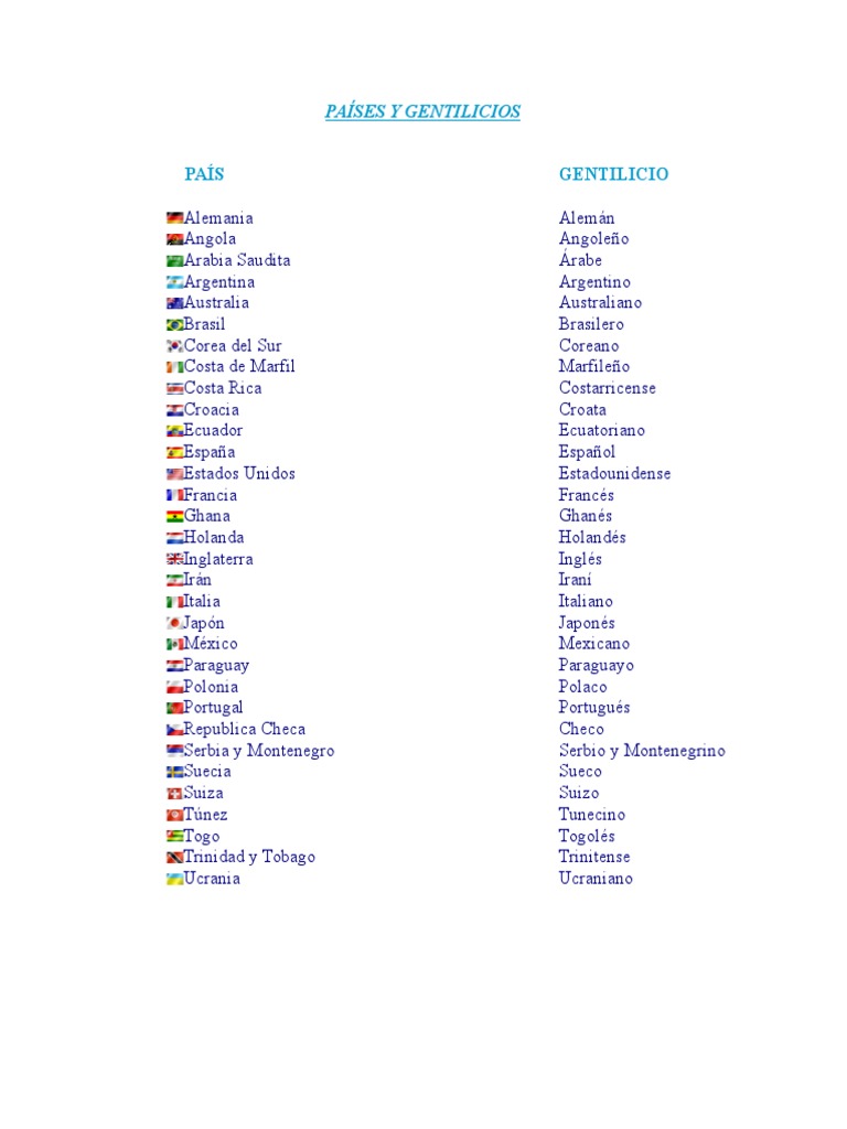 Gentilicios De Todos Los Paises Del Mundo Gentilicios