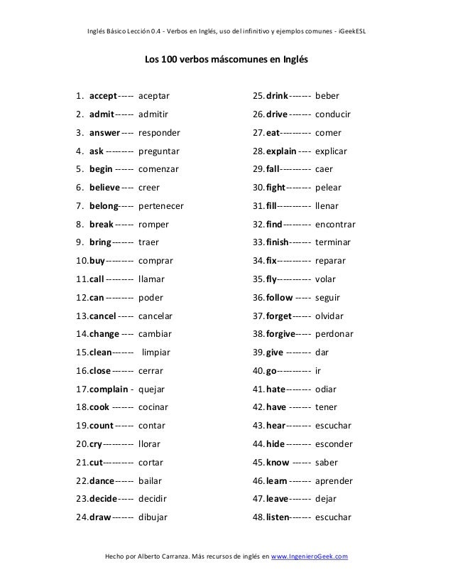 El Blog Para Aprender Ingles 15 Verbos Que Van Seguidos De Un Infinitivo